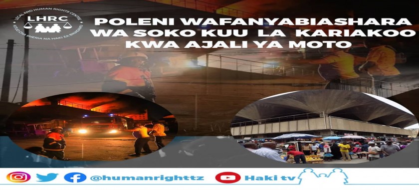Kituo cha Sheria na Haki za Binadamu (LHRC) kimesikitishwa na tukio la moto lililotokea katika Soko Kuu la Kariakoo na kusababisha uharibifu wa vitu mbalimbali vyenye thamani. Pia tunachukua fursa hii kuwapa pole wote walioathirika na tukio hili kwa namna yoyote.