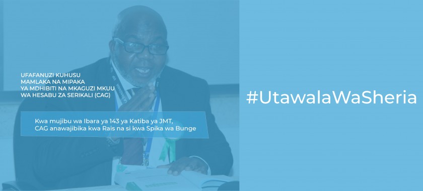 i.Mdhibiti na Mkaguzi Mkuu wa Hesabu za Serikali anawajibika kwa Rais sio kwa Bunge. Ibara ya 143 (4). Bungeni huwasilisha taarifa ambayo imetoka kwa Rais.