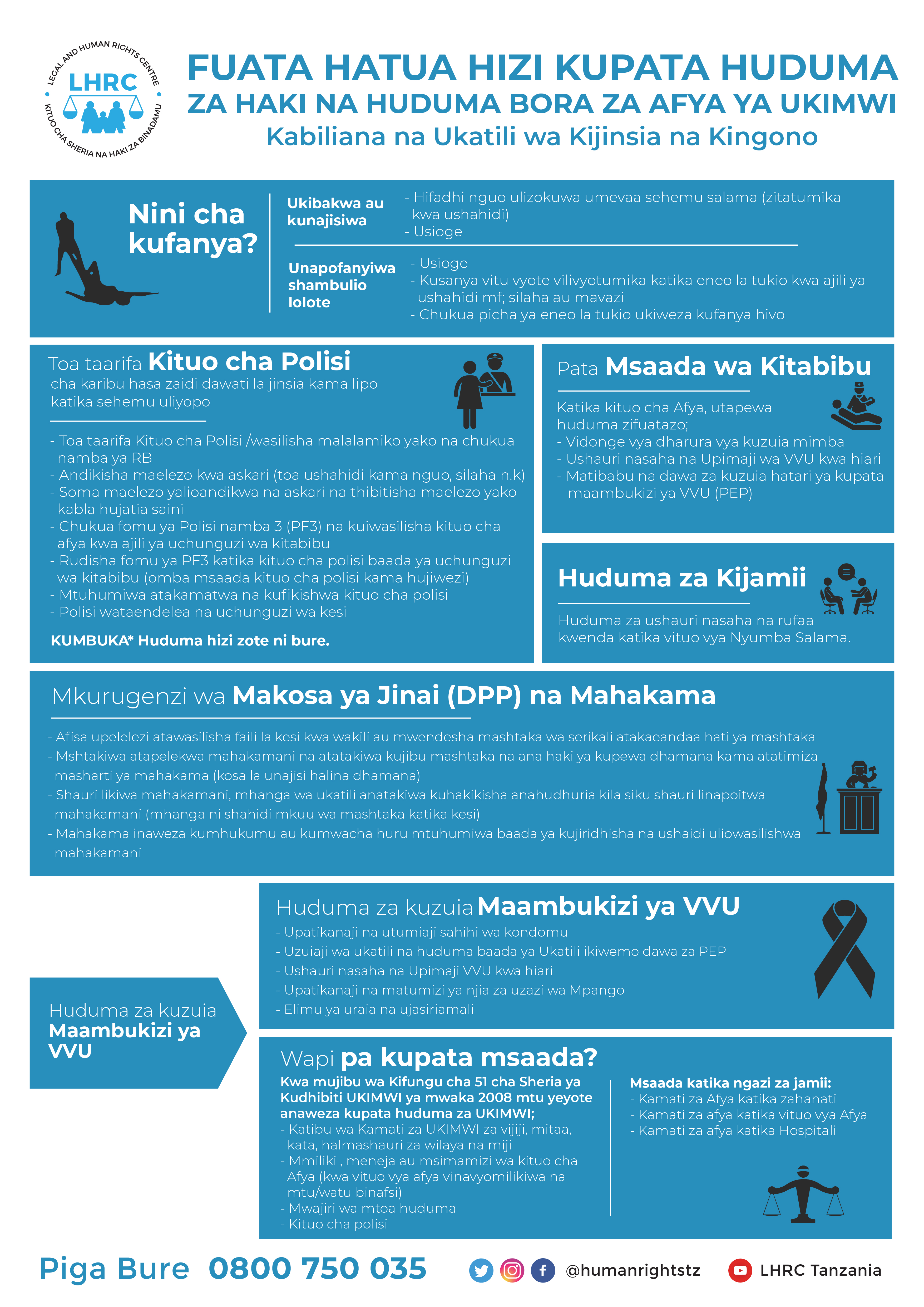 Hali hi inawaathiri sana wanawake wahanga wa ukatili na kuwaweka katika hatari ya kufanyiwa ukatili tena. Chati hii ya malalamiko imeandaliwa mahususi kuwasaidia wanawake wahanga wa ukatili kufahamu mifumo ya kudai haki na njia za kufuata kuipata haki hiyo.